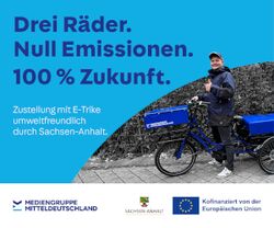 Einen weiteren Schritt zu mehr Umweltverträglichkeit hat jetzt die Mediengruppe Mitteldeutschland gemacht. Durch die Anschaffung von insgesamt 46 E-Trikes für ihren Bereich Post & Logistik sind die Zusteller der Mitteldeutschen Zeitung und der Volksstimme jetzt zwischen Altmark und Zeitz bedeutend umweltfreundlicher unterwegs. Die praktischen blauen Trikes wurden von der Europäischen Union kofinanziert und ersetzen zu Teilen die bisher im Einsatz befindlichen Verbrenner. Vorteil: sie verbrauchen in Zukunft wesentlich weniger Energie pro Kilometer als ihre Vorgänger. ...